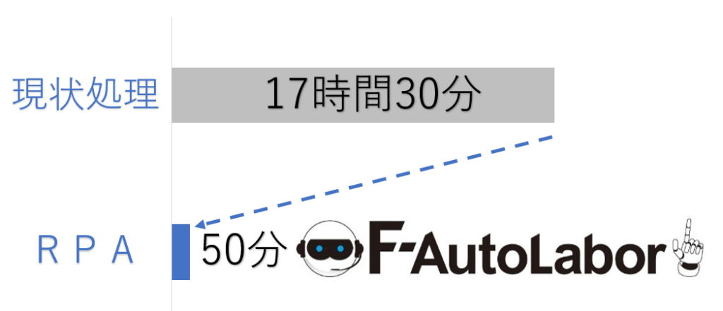 削減時間16時間40分、年間換算で削減率95.2%となる計算になります。処理件数の多い、定型業務の自働制御はRPA導入のメリットが大きい分野です。シナリオ作成後、Webサービスやグループウェアの仕様が変更となった場合でも、変更部分のみメンテナンス対応することで円滑に移行できます。